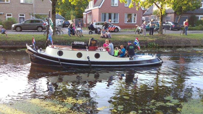 Am Freitagabend veranstaltete der nahe gelegene Wassersportverein eine Corsovaart. Geschmückte Boote, teilweise mit Pontons im Schlepp, gingen um 18.30 Uhr auf die Reise. Ideale Zeit um ein paar schöne Fotos zu machen. Die Rückkehr erfolgt dann im Dunkeln. Dann sind alle Boote beleuchtet.