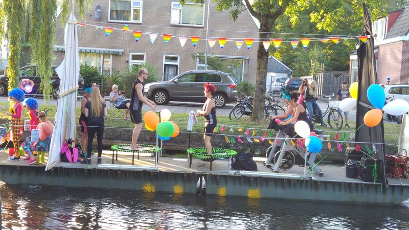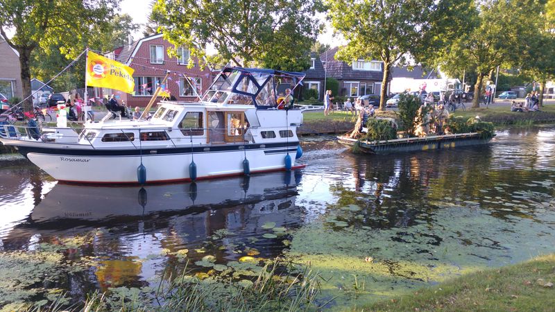 Am Freitagabend veranstaltete der nahe gelegene Wassersportverein eine Corsovaart. Geschmückte Boote, teilweise mit Pontons im Schlepp, gingen um 18.30 Uhr auf die Reise. Ideale Zeit um ein paar schöne Fotos zu machen. Die Rückkehr erfolgt dann im Dunkeln. Dann sind alle Boote beleuchtet.