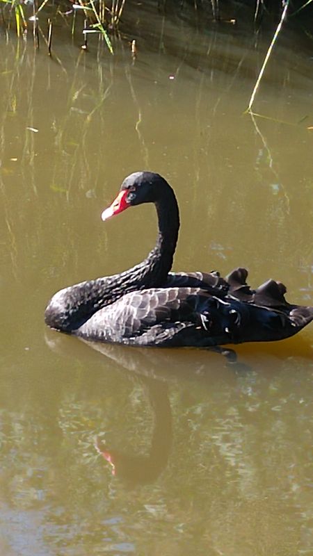 Eine Rarität dürfte wohl der schwarze Schwan sein, den wir in einem Wassergraben entdeckten