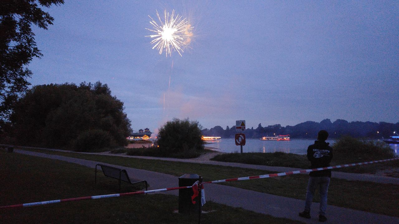 Auf der Rückkehr zum Stellplatz konnten wir in der Nähe des schon erwähnten Rudervereins den Aufbau eines Feuerwerkes beobachten. Dort haben wir dann am Abend auch die Schiffsprozession und das Begrüßungsfeuerwerk ansehen können.