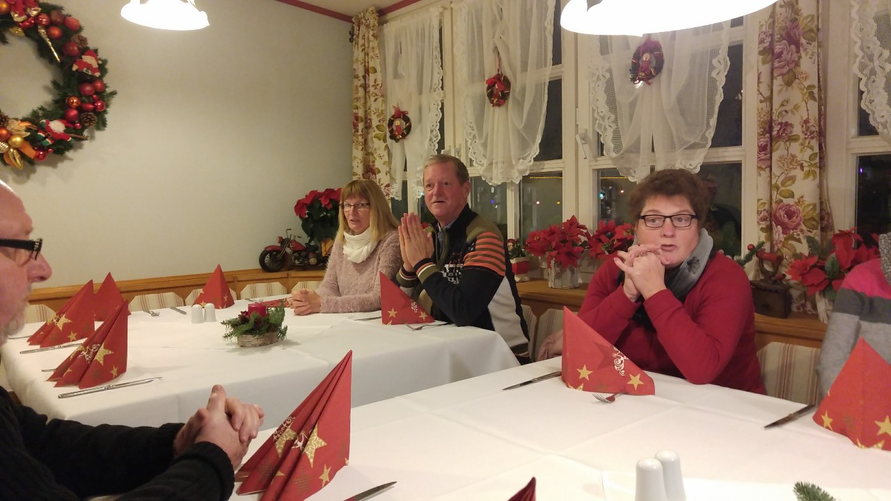 Die Essenbestellung wurde schon zu einer Gaudi, denn etliche RMGOler wollten die Gerichte in anderer Zusammenstellung, als auf der Speisekarte angeboten. Die Bedienung hatte auch ihre Freude an den Bestellkreationen. Ein Lob an die Gastronomie und insbesondere an die Küche, die alle Wünsche erfüllte und die verschiedenen Speisen fast gleichzeitig servierte.