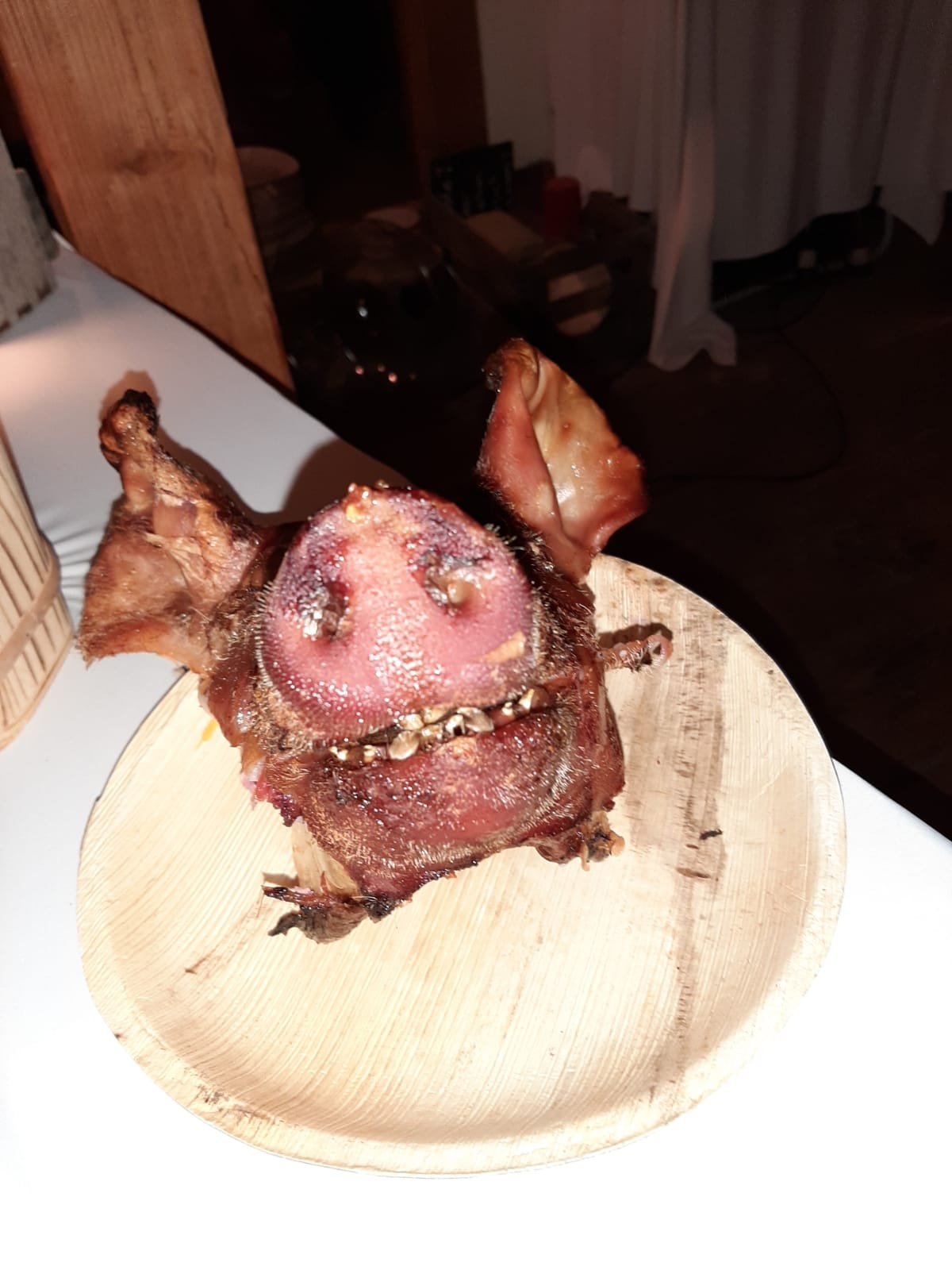 Das Abendbuffet wurde kurzfristig durch ein Spanferkelessen ersetzt.