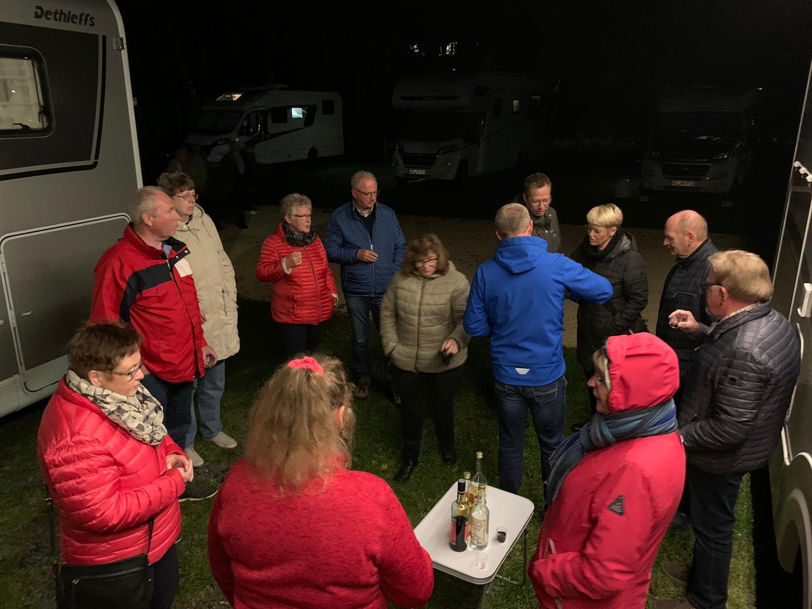 Abschluß der Veranstaltung war eine Runde bei den Mobilen mit einem Gute-Nacht-Trunk und den Dank an Winni für die Organisation der Reise.