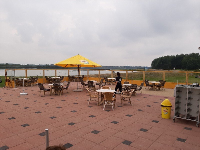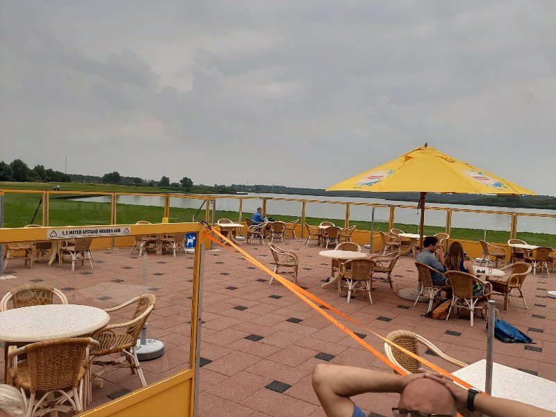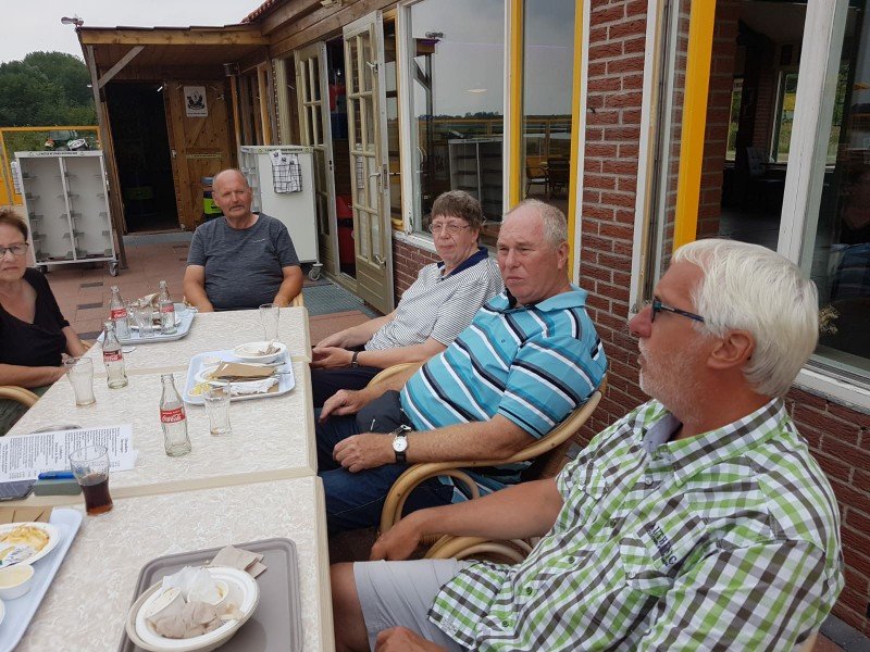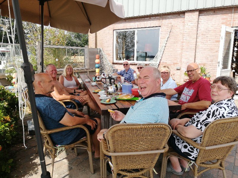 Am Sonntag war gegen Nachmittag Regen gemeldet. Deshalb wurde nur eine kurze Radtour entlang des Deiches (Lauwersmeer/Nordsee) zur in etwa gegnüber dem Stellplatz liegenden Uferseite gemacht. Dort genossen wir Getränke und Kuchen und für einige war neu zu erleben, das in den Niederlanden Tischweise abgerechnet wird und nicht Einzelpaare. Wegen des hohen Besucheraufkommens war die Bedienung nicht zu bewegen Einzelrechnungen zu erstellen. Als Gruppe konnten wir problemlos nach Rückkehr auf dem Stellplatz die Einzelabrechnungen nachholen.