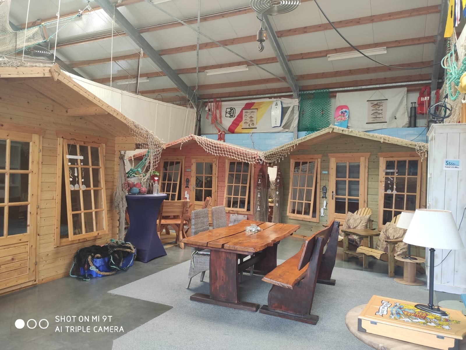 In einem weiteren Raum der Halle sind Übernachtungshütten aufgebaut, die auch gemietet werden können.