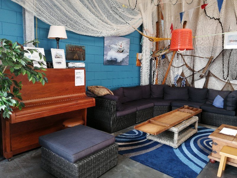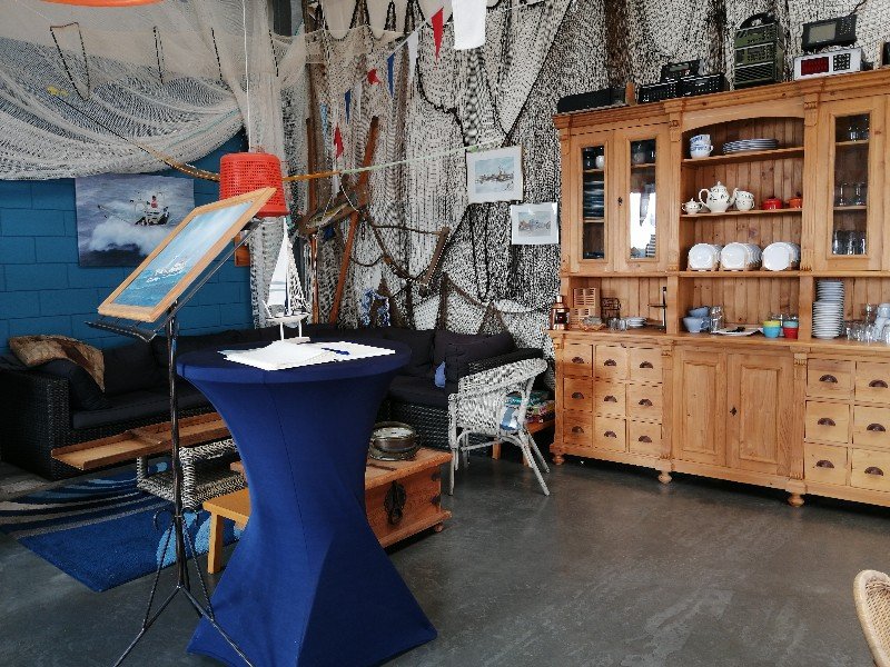 Zur Deko des Raumes gehören auch alte Geräte aus der Schifffahrt.