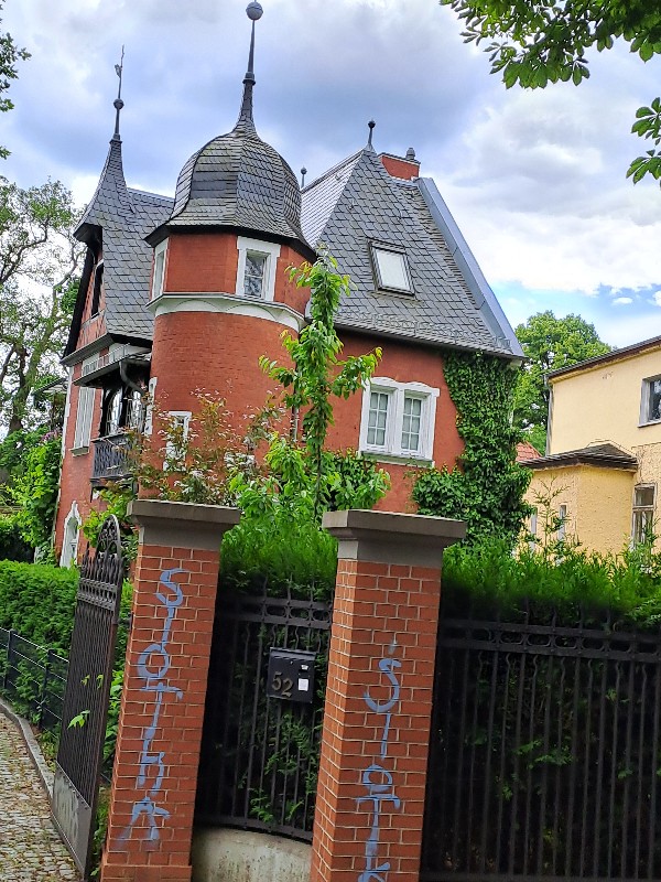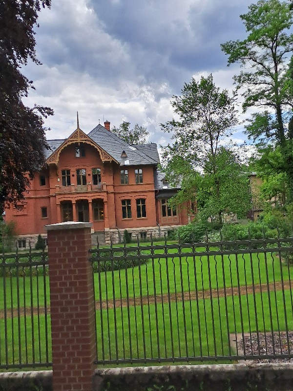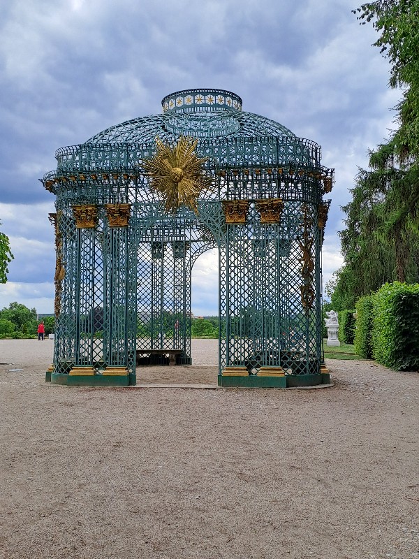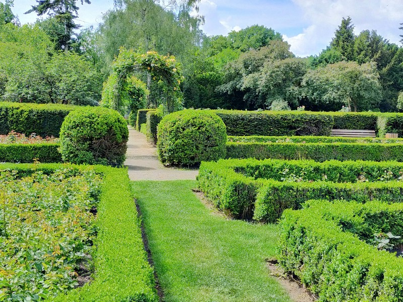Der Rückweg führte uns durch einen Rosengarten und wir hatten von oben ein dekoratives Gebäude