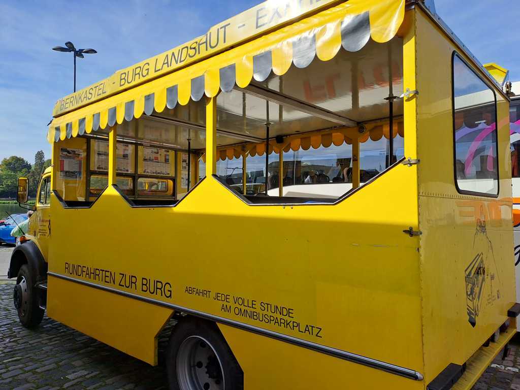 Fritz fand heraus, das es bequemer ist, den "knallgelben" Burg Landshut Express zu nutzen. Er bringt schnell und zuverlässig vor die Pforten der Burg Landshut, welche hoch über Bernkastel thront.