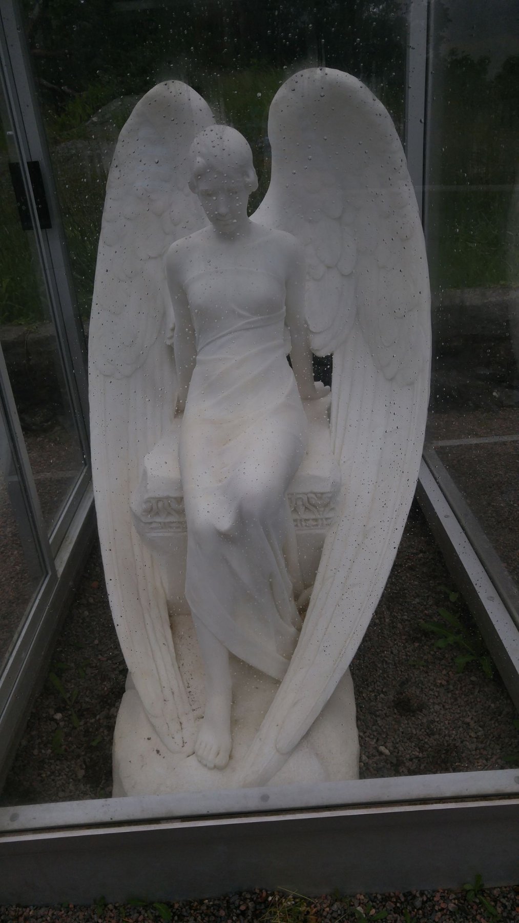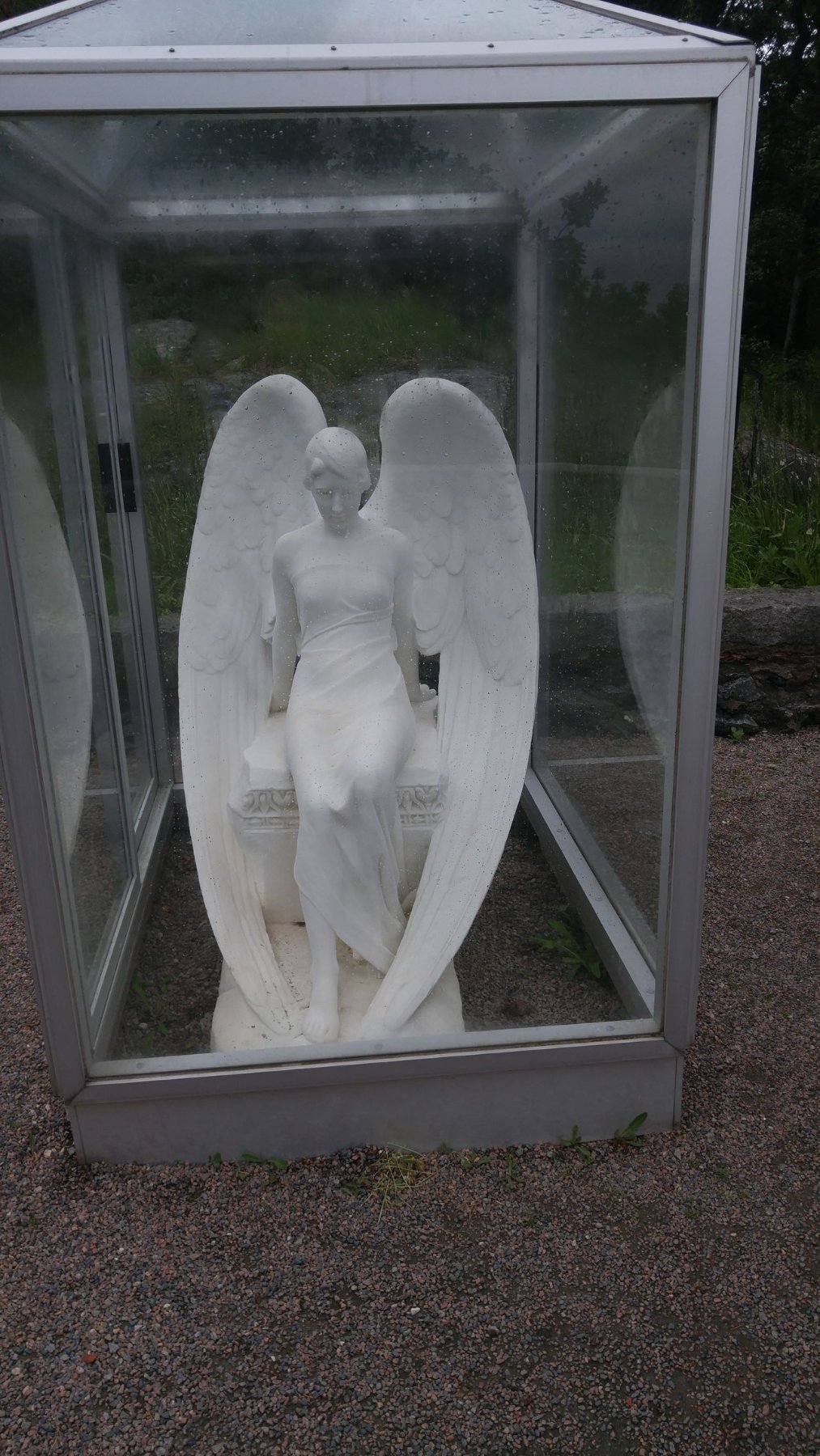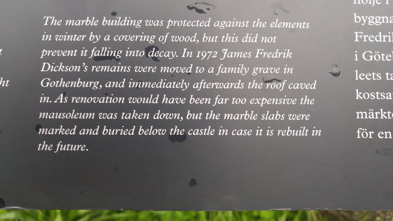 bevor wir dann die Kirche, eine Ausstellung und das Schloss von außen besichtigten. Das Mausoleum war aus Marmor gebaut und der Marmor durch die Witterungseinflüsse (insbesondere im Winter) zerstört worden. Eine Marmorfigur in einem Glaskasten (Foto) ist noch erhalten und Reste zeigen das Ausmaß von Witterungseinfluß auf Marmor.