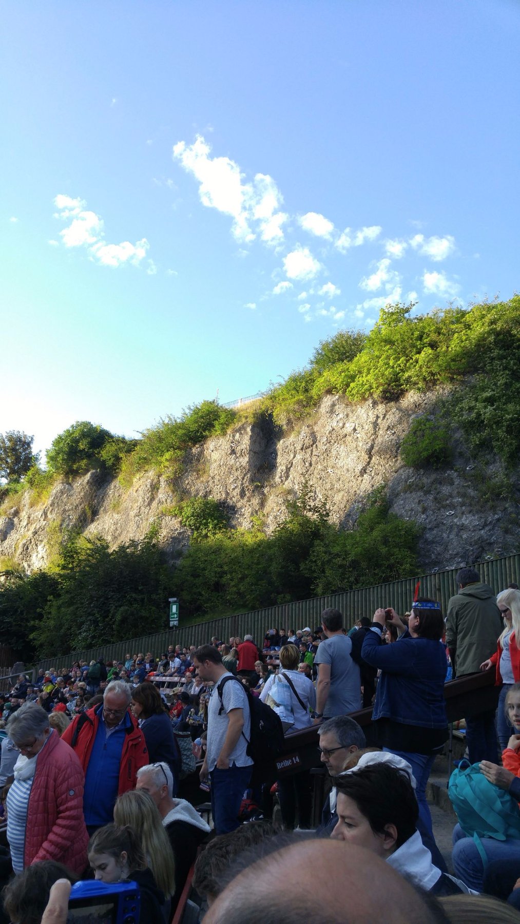 Die Freiluftbühne mit ca. 10.000 Sitzplätze bietet am Kalkberg eine super Kulisse. Die eingesetzten Feuereffekte konnten wir hautnah spüren.