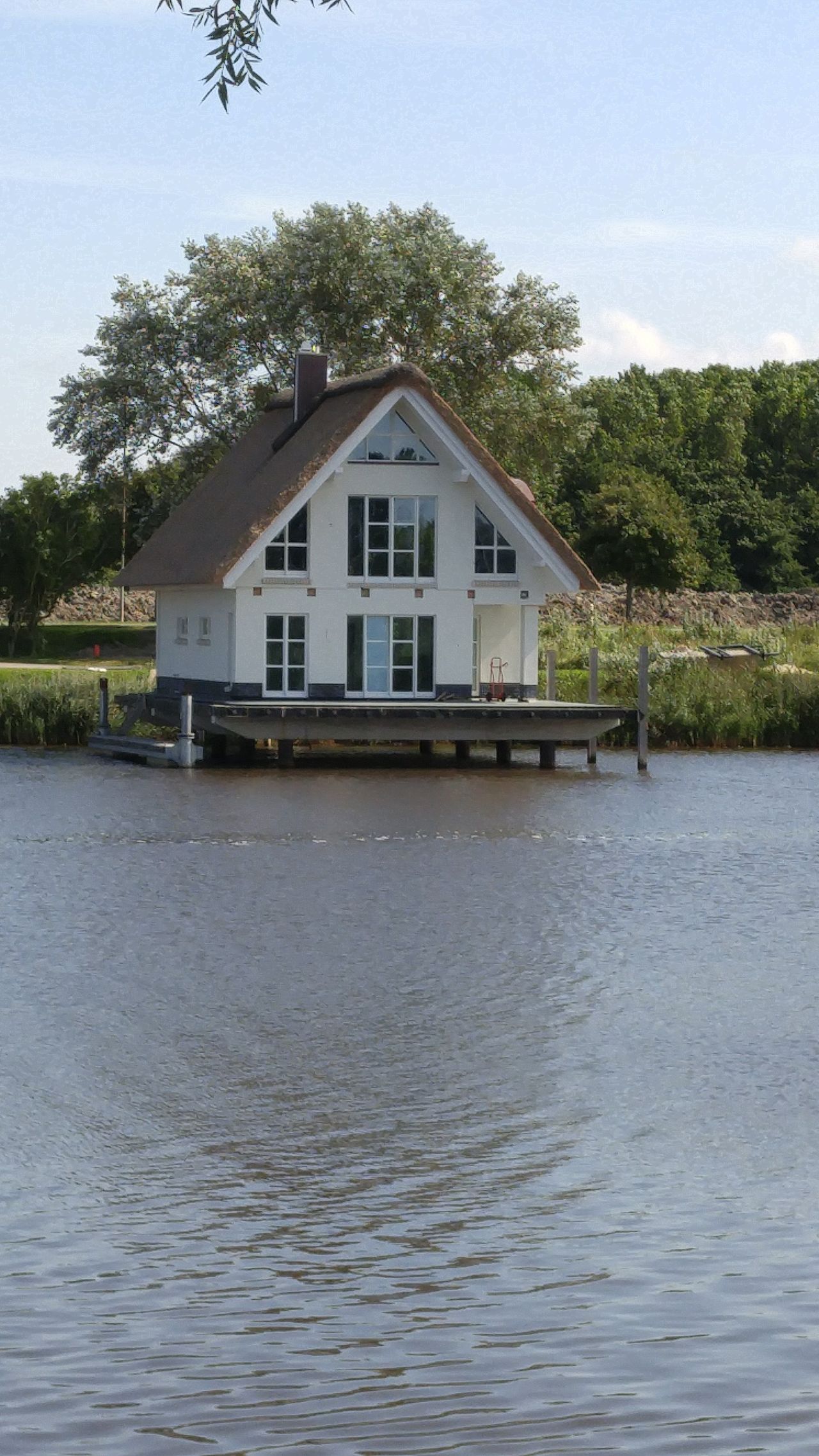 Bei einem kleinen Rundgang entdeckten wir interessante Neubauten direkt auf dem Wasser (kein Rasenmähen