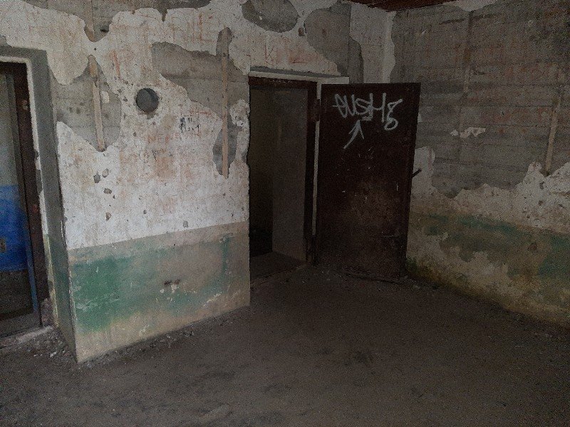 Die Innenräume sind betretbar. Nur durch Blitzlicht erleuchtet sieht man