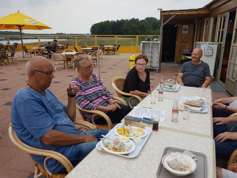 Am Sonntag war gegen Nachmittag Regen gemeldet. Deshalb wurde nur eine kurze Radtour entlang des Deiches (Lauwersmeer/Nordsee) zur in etwa gegnüber dem Stellplatz liegenden Uferseite gemacht. Dort genossen wir Getränke und Kuchen und für einige war neu zu erleben, das in den Niederlanden Tischweise abgerechnet wird und nicht Einzelpaare. Wegen des hohen Besucheraufkommens war die Bedienung nicht zu bewegen Einzelrechnungen zu erstellen. Als Gruppe konnten wir problemlos nach Rückkehr auf dem Stellplatz die Einzelabrechnungen nachholen.