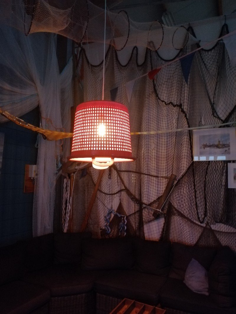 Zur Deko des Raumes gehören auch alte Geräte aus der Schifffahrt.