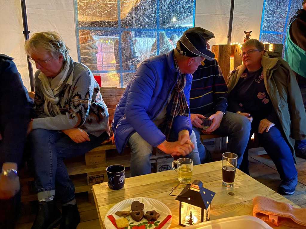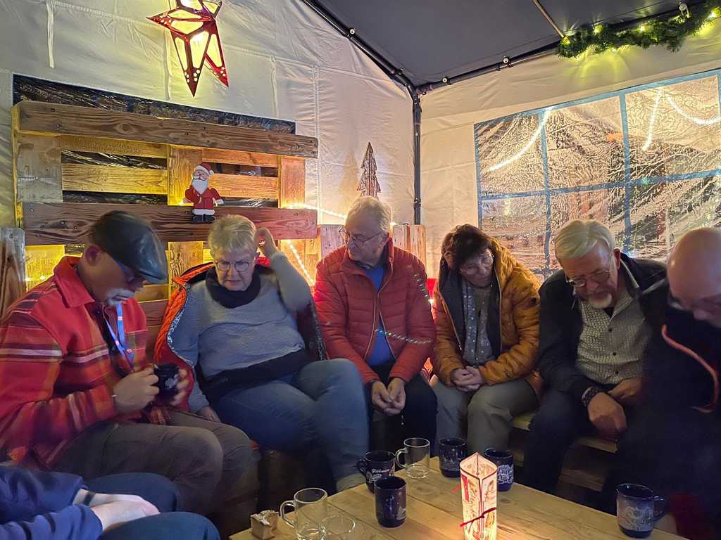 Wir konnten als Gruppe eines der beheizten Zelte belegen und freuten uns über die hier sehr zivilen Preise für den Glühwein.