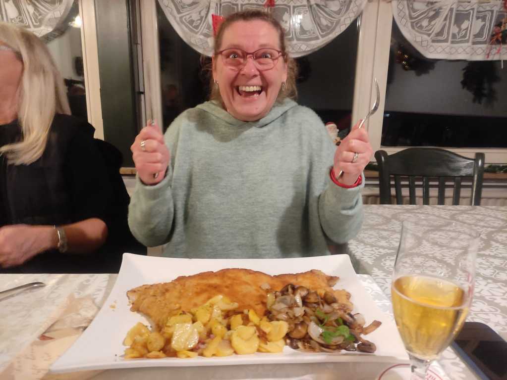 Hier war die Freude über das XXL-Schnitzel noch groß: